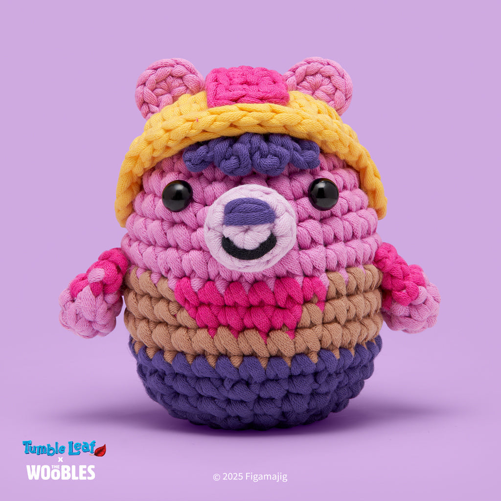 With her yellow hat. knack for invention. and fabulous custom hook. this purple pal is sure to brighten your day. Plus as a Beginner+ kit. she's also great for Wooblers of any level. Our Easy Peasy Yarn™ will help even newbies avoid snarls and snags. while our step-by-step videos will keep things polar-rifically simple. So whether you're looking for treasure using her Map add-on—or maybe just a ride in her balloon boat. you're in fur an un-bear-ably good time!