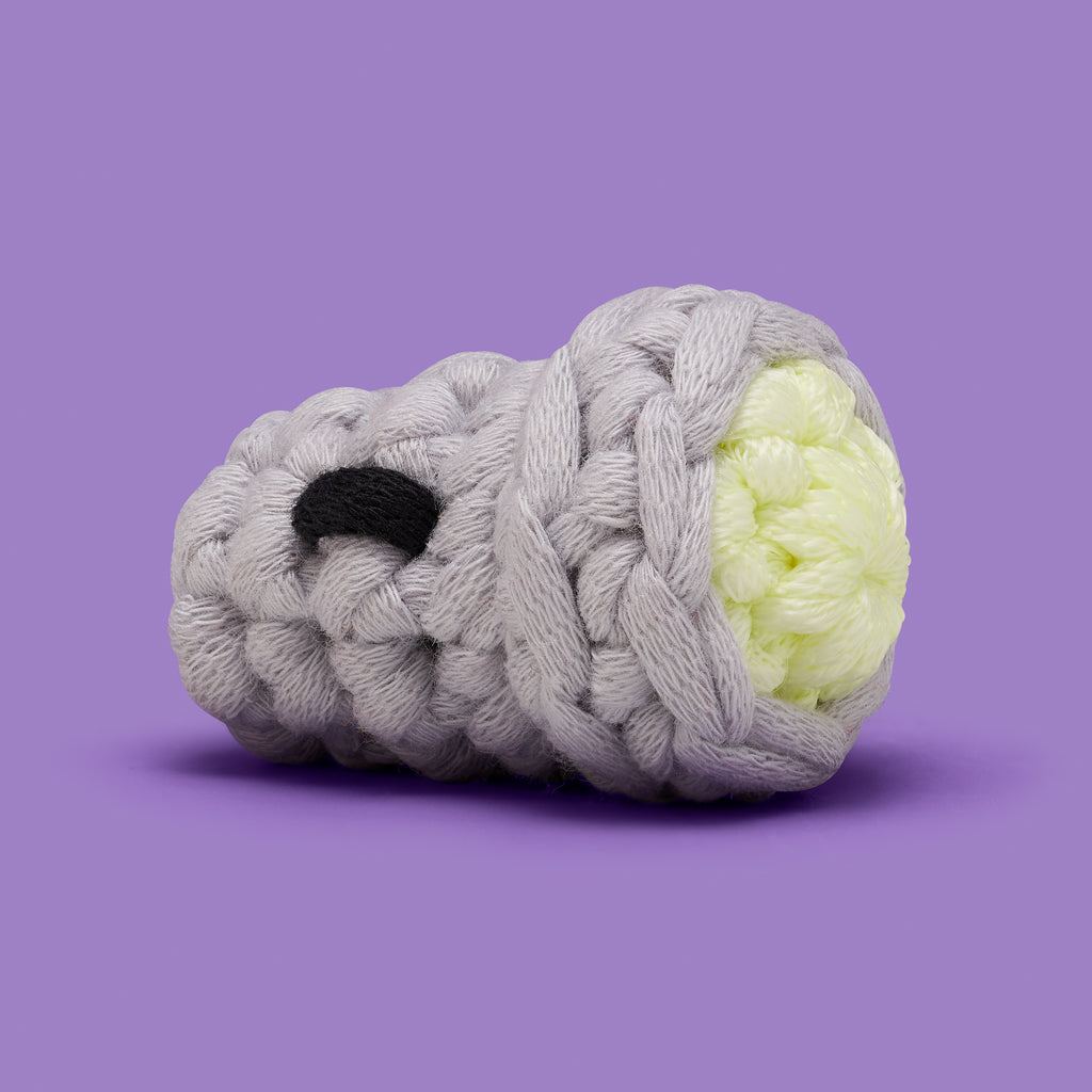 With its cute lil' ON button and glow-in-the-dark lens. this yellow-mazing kit is pretty flashin' fantastic. Equally great is the fact that it's a Beginner+ kit. which makes it simple Wooblers to really shine. Just grab some Easy Peasy Yarn™ and follow our step-by-step videos. and you'll soon be beaming with pride. So let's flip the switch and really turn things on. 'cause this eerie-sistible kit is totally lit!